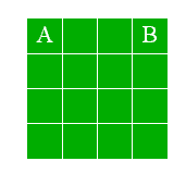 | 16. | In going from square A to square B in the figure, what is the maximum number of squares that a chess knight could touch, including A and B, if the knight makes only permissible moves for a chess knight (consult a book on how to play chess if in doubt), does not touch any square more than once, and does not go outside the 16 squares shown? | ![]() |
